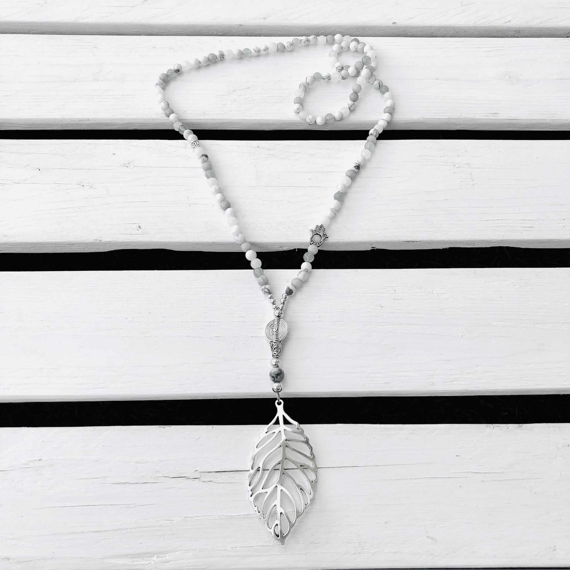 Beaded Necklace with Leaf Pendant -Choose Gemstone/Colour