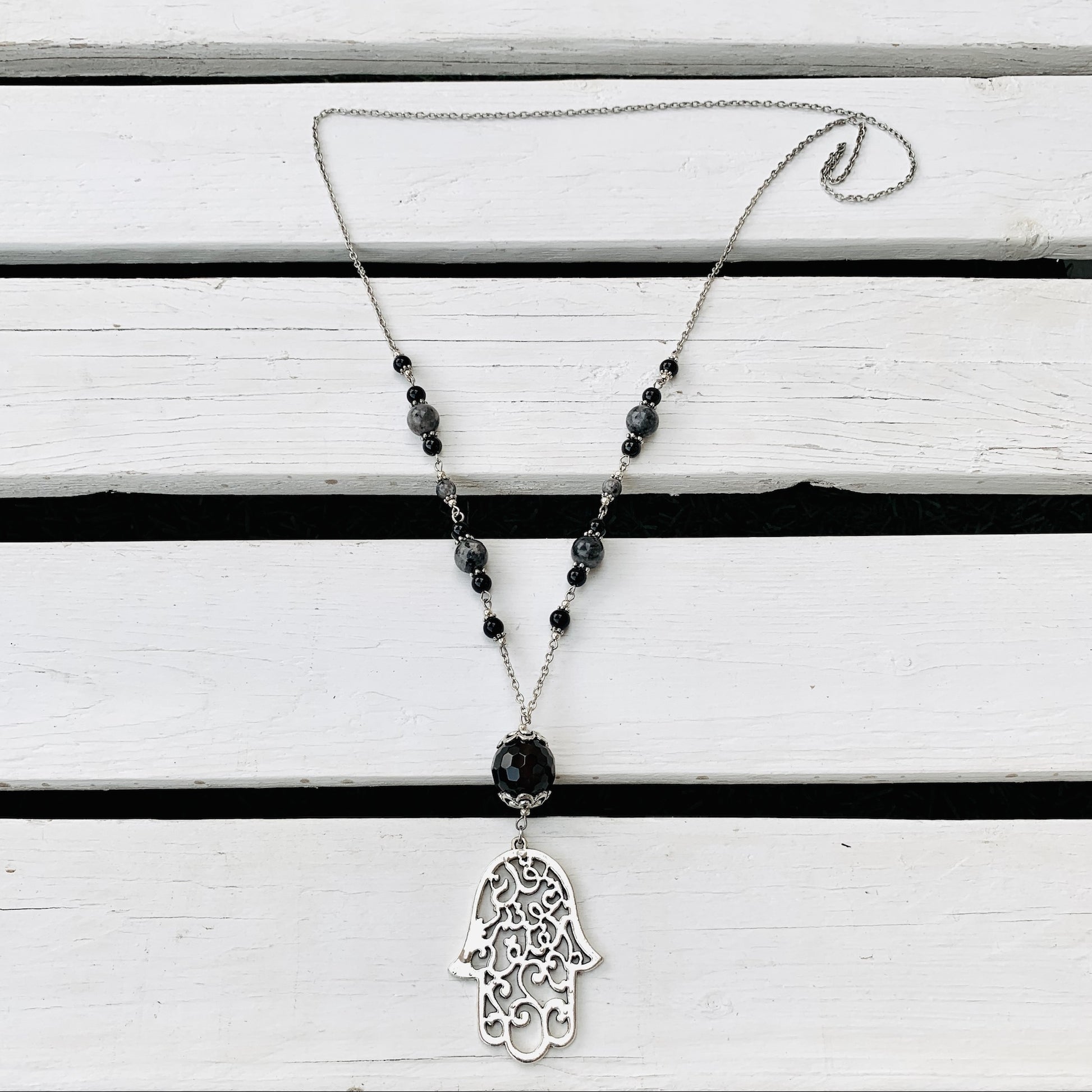 Each necklace will have the same design as the photo, with a silver Hand of Fatima pendant and accents. Making this a wonderful locally inspired gift for you and your loved ones.