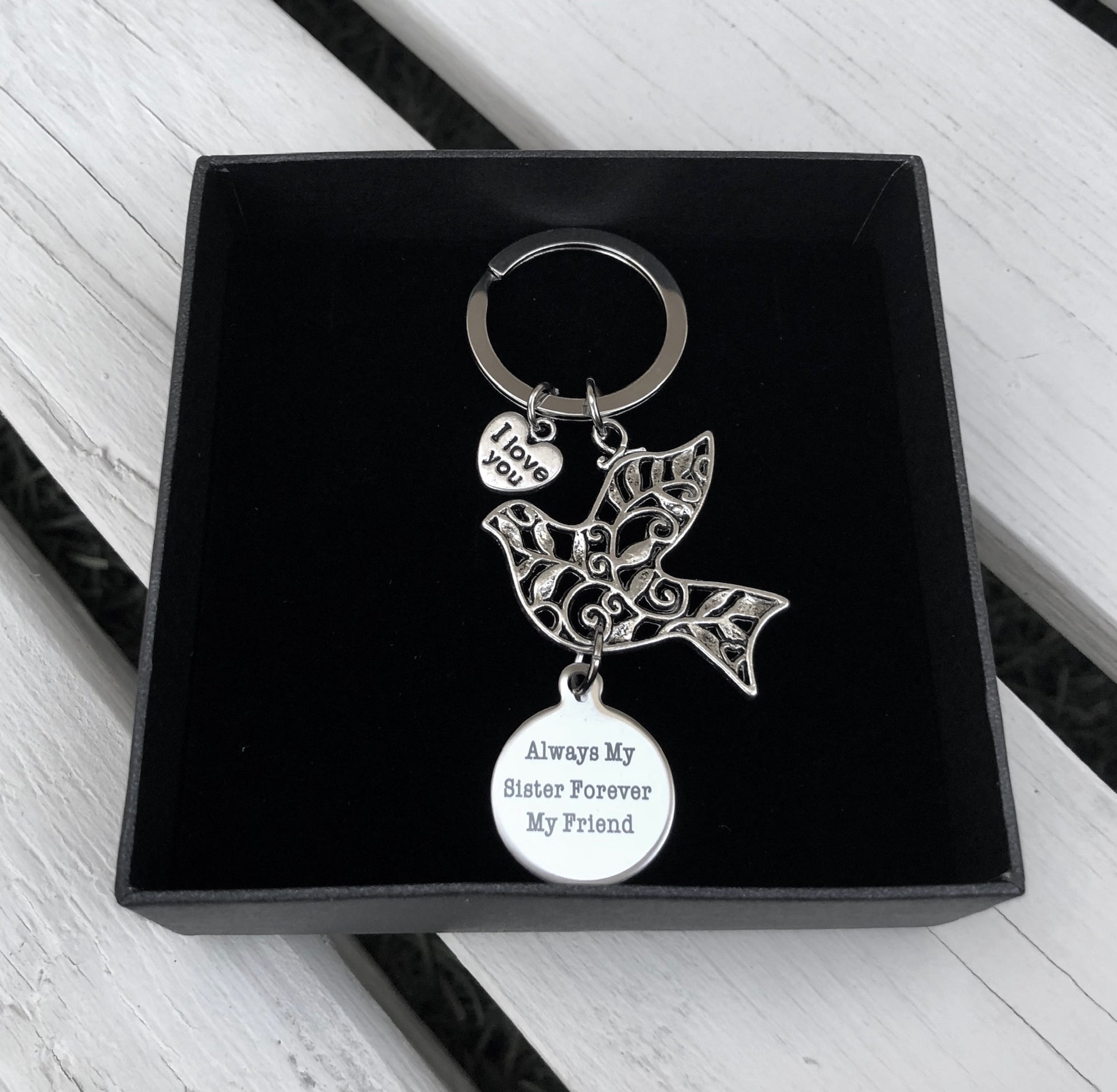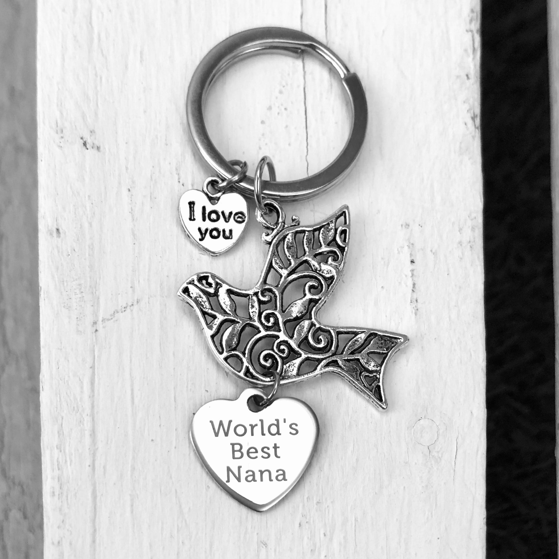 This Dove Keyring is a symbol of love and peace, making it a thoughtful gift for any occasion. Choose a heartfelt message for a specific family member you're gifting. A gift that is sure to be treasured.