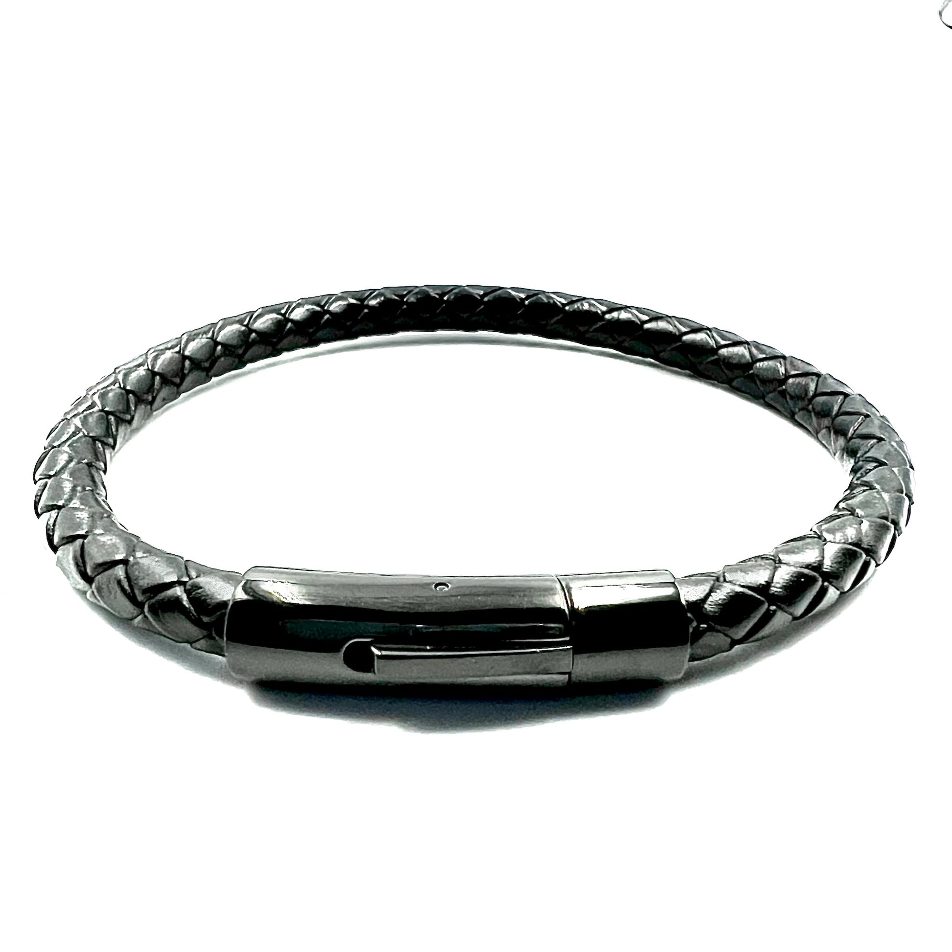 Our Mens Black Rope Style Leather Bracelet has a pull clip fastener, making it easy to put on and take off and comes in Two sizes, average and large to fit all mens wrists.