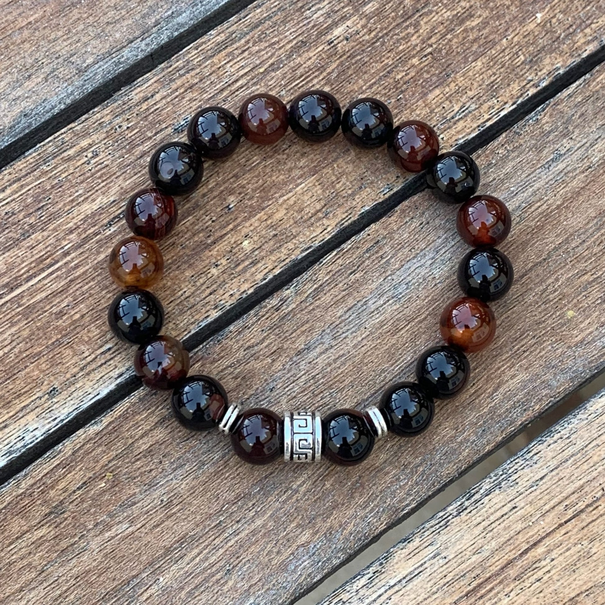 Our Unisex handmade 8mm Brown Agate beaded bracelet with silver spacers is a unique design.